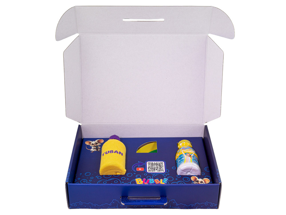 Zestaw pozwala na przeprowadzenie aż 10 różnych sztuczek, które z pewnością zaciekawią każdego Malucha. Dołączona do zestawu instrukcja krok po kroku tłumaczy, jak wykonać sztuczkę. Dodatkowo, przy każdym eksperymencie znajduje się kod QR, który przeniesie Was do filmu pokazującego bańkową sztuczkę.