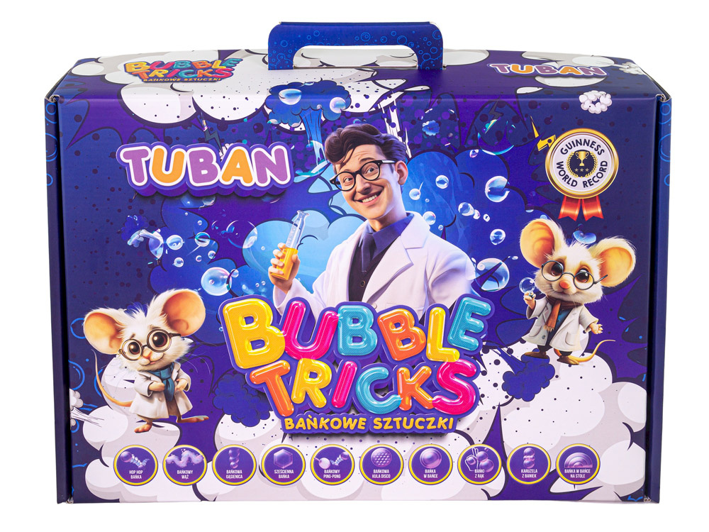 Bańkowe Sztuczki od znanej i lubianej marki Tuban to gwarancja fascynującej i pełnej niespodzianek zabawy, która wciągnie nas w cudowny świat baniek mydlanych.