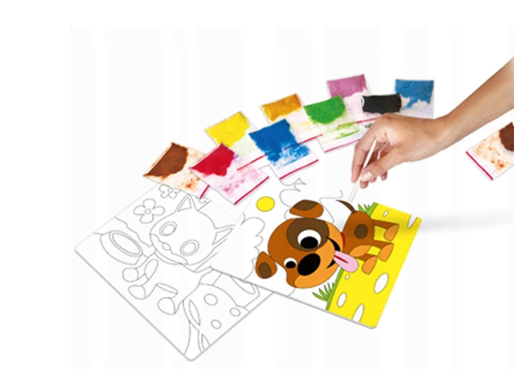 Malowanie piaskiem to technika plastyczna, która cieszy się dużym zainteresowaniem wśród dzieci. Piaskowe malowanki świetnie wpływają na zdolności manualne rąk, a także koordynację oko-ręka. Rozwijają wyobraźnię i pewność siebie dziecka, ponieważ nawet mniej uzdolnione artystycznie maluchy mogą w prosty sposób wykonać przepiękną pracę. Samodzielnie wykonany obrazek będzie wspaniałą ozdobą każdego dziecięcego pokoju czy prezentem dla mamy, taty, babci....