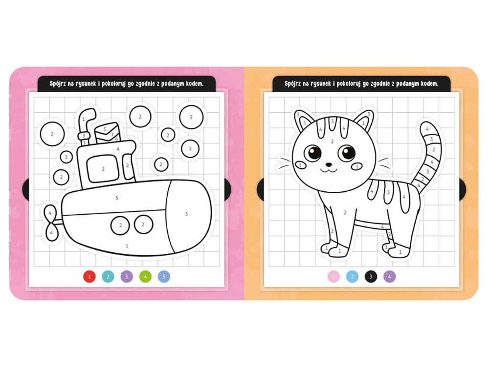 Seria malowanek edukacyjnych z przyjaznymi wzorami. Wyzwanie polega na tym, że rysunki zostały zakodowane – składają się z odpowiednio rozmieszczonych cyferek. Zadaniem dzieci jest odkrycie, co przedstawia każdy z 12 obrazków poprzez pokolorowanie go zgodnie z podanym kolorem.