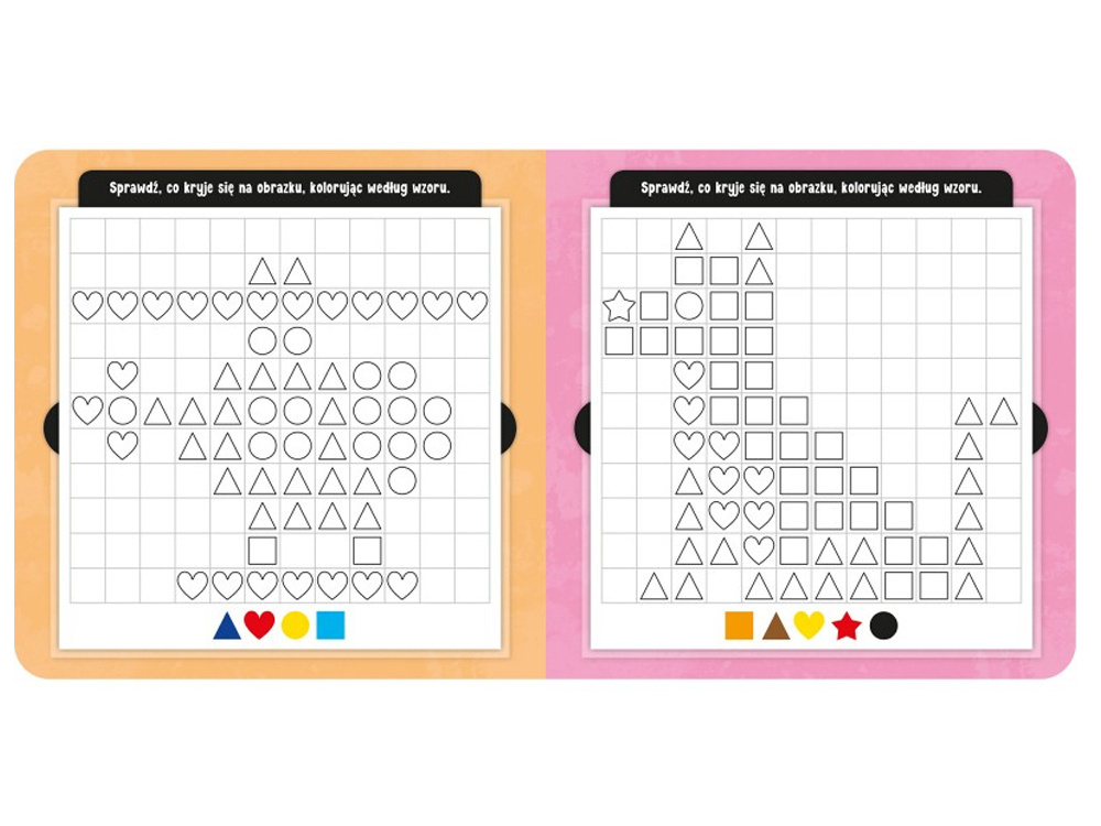 Seria malowanek edukacyjnych z przyjaznymi wzorami. Wyzwanie polega na tym, że rysunki zostały zakodowane – składają się z odpowiednio rozmieszczonych znaków – serc, gwiazdek, kółek, kwadratów i trójkątów – które przybierają kształt danych obiektów. Zadaniem dzieci jest odkrycie, co przedstawia każdy z 12 obrazków poprzez pokolorowanie go zgodnie z podanym kodem – każdy znak oznacza inny kolor. Liczba znaków jest zmienna i zależy od stopnia skomplikowania rysunku.