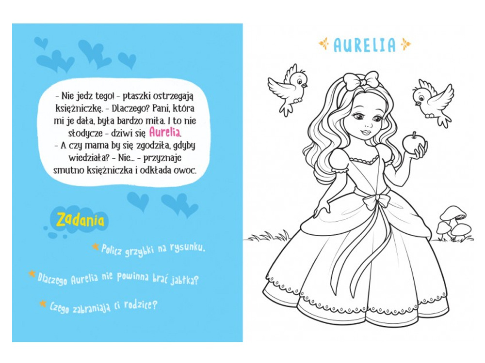 Pomaluj i poznaj księżniczki jakie znajdują się w malowance. Są tu między innymi: Marika, Mia czy Aurelia.