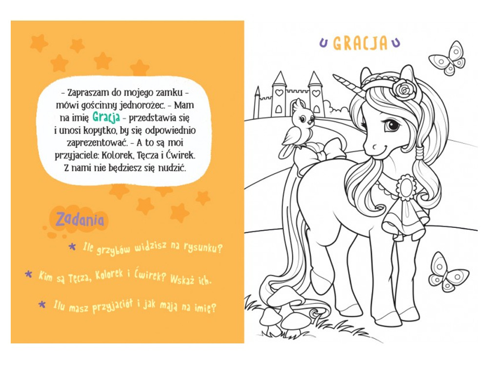 Pomaluj i poznaj zwierzątka jakie znajdują się w malowance. Są tu między innymi: Bajka, Bella czy Iskierka.