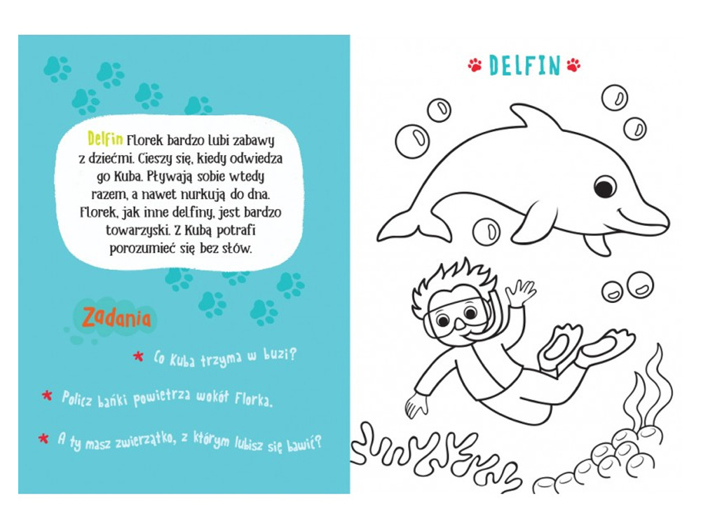 Lubiana przez dzieci tematyka rysunków i ciekawe historyjki o zwierzętach zachęcą dzieci do kolorowania. Malowanki ze zwierzakami to świetna zabawa kolorami, która rozwinie kreatywność i sprawność manualną dziecka. Pozwoli również ćwiczyć cierpliwość i koncentrację.