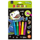 16 x 27 cm; strony pokryte przyjemnym w dotyku i ułatwiającym kolorowanie welurem, perforacja, ilustracje czarno-białe, spirala, dołączone flamastry