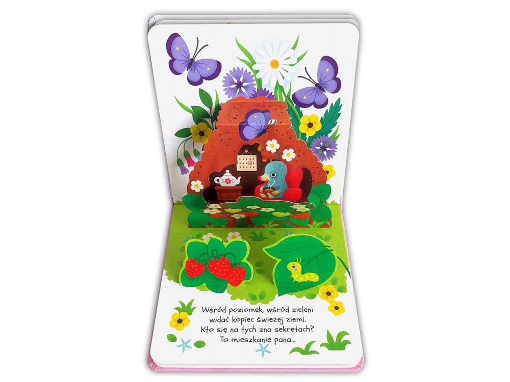 Otwórz książeczkę z maluszkiem i zobaczcie, jakie zwierzątka się tam schowały. Każda strona to ciekawa przygoda i kolorowe ilustracje przedstawiające łąkę i ich mieszkańców. Znajdziesz tutaj między innymi jeżyka, zajączka, kreta i wiele innych. Ale  wiesz co jest ich domkiem? Wszystkiego się tam dowiesz.