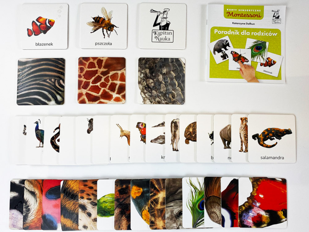 Montessori wierzyła, że dzieci lubią być blisko natury. Dlatego zachęcajmy je do spotkań z przyrodą, które będą angażować zmysły wzroku, dotyku, słuchu i węchu, oraz do zabaw z pomocami takimi jak te karty. Przedstawione na nich realistyczne ilustracje stanowią doskonałe uzupełnienie wiedzy o otaczającym świecie.