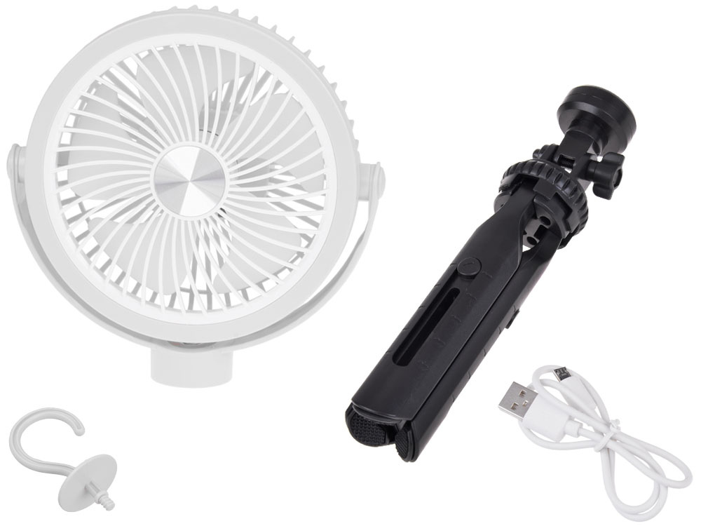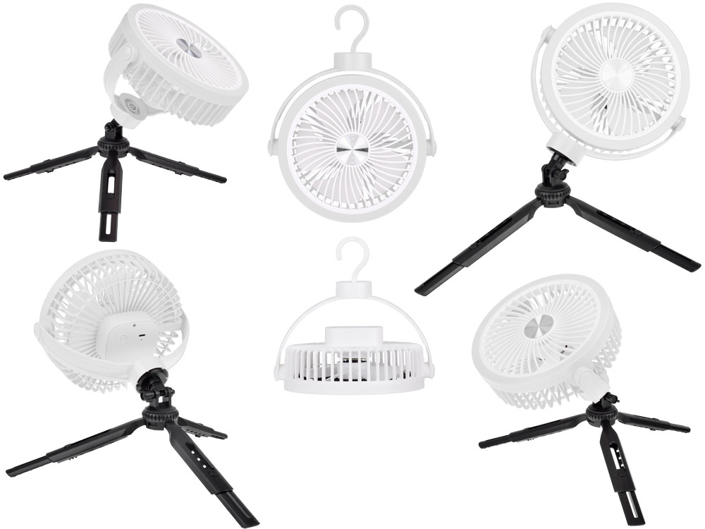 • Uniwersalność zastosowania: wiatrak można zawiesić w namiocie na haczyku, postawić na regulowanych nóżkach na biurku w pracy.