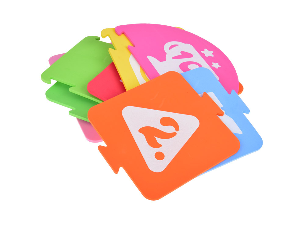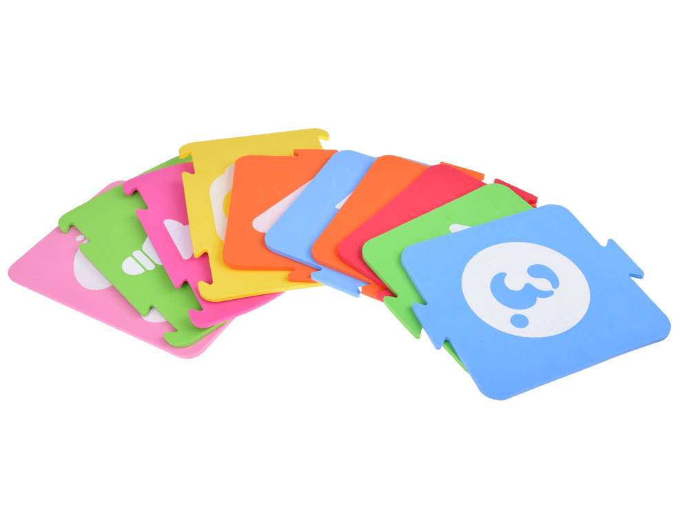 Dodatkowo: każdy puzzel jest stworzony z miękkiej pianki, przyjemnej w dotyku o innym, pastelowym kolorze. Dla łatwiejszego ułożenia na każdym elemencie narysowano (oprócz wykonywanego elementu) cyferki, według których należy je odpowiednio ułożyć.