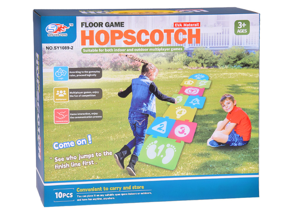 • piankowa mata, 10 piankowych puzzli, gra w klasy, ręka noga, skacz, gra ruchowa, sportowa, gra na zewnątrz, gra podłogowa