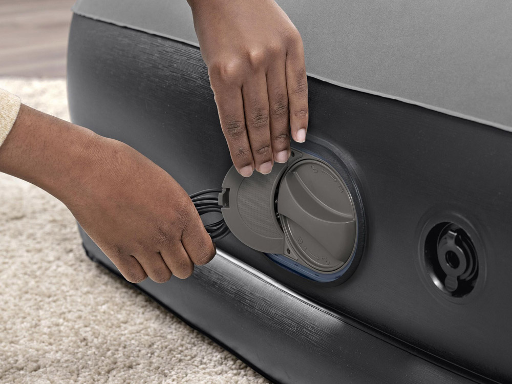 Wbudowana pompka USB napompuje łóżko w 5-6 minut. Pompka zawiera przewód USB, kompatybilny z wtyczkami Ac lub DC oraz niektórymi zewnętrznymi akumulatorami.