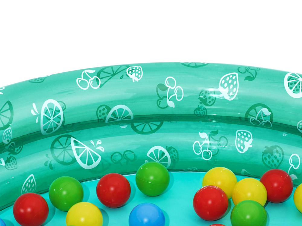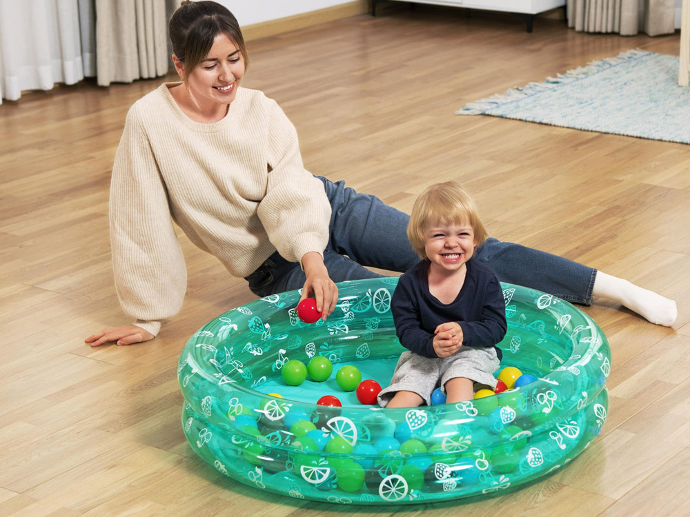 Sprawdzi się podczas nie jednej zabawy w domu, ogrodzie jak również podczas wakacyjnego wyjazdu. Basenik jest świetną alternatywą, która przyda się, gdy chcemy utrzymać maluszka w jednym miejscu oraz uzyskać chwilę wytchnienia dla siebie :) Basenik posiada miękkie dmuchane ścianki, które powstały z dwóch dmuchanych pierścieni, tworzących stabilną ściankę boczną. Wykonany jest z miękkiego lecz trwałego materiału, posiada zawory bezpieczeństwa przeciwko wydostawaniu się powietrza na zewnątrz. Basenik w zestawie posiada kolorowe piłeczki, które na pewno dodatkowo urozmaicą zabawę naszym pociechą.