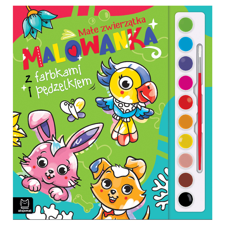 format: | 27 x 29 cm; dołączony pędzelek i panel z farbkami w 10 kolorach, gruby papier, ilustracje barwne, perforacja |
