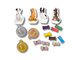 - 10 kości (6 z kolorami i 4 z kształtami)