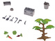 - elementy do zbudowania zagrody i ogródka warzywnego