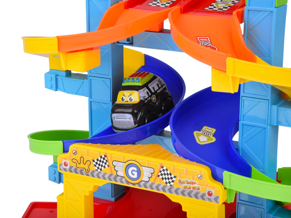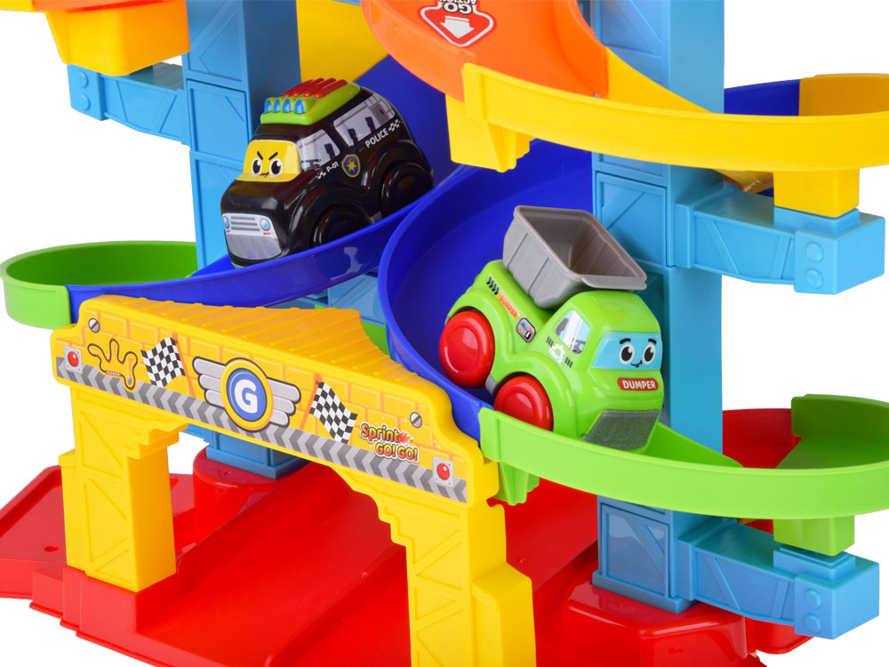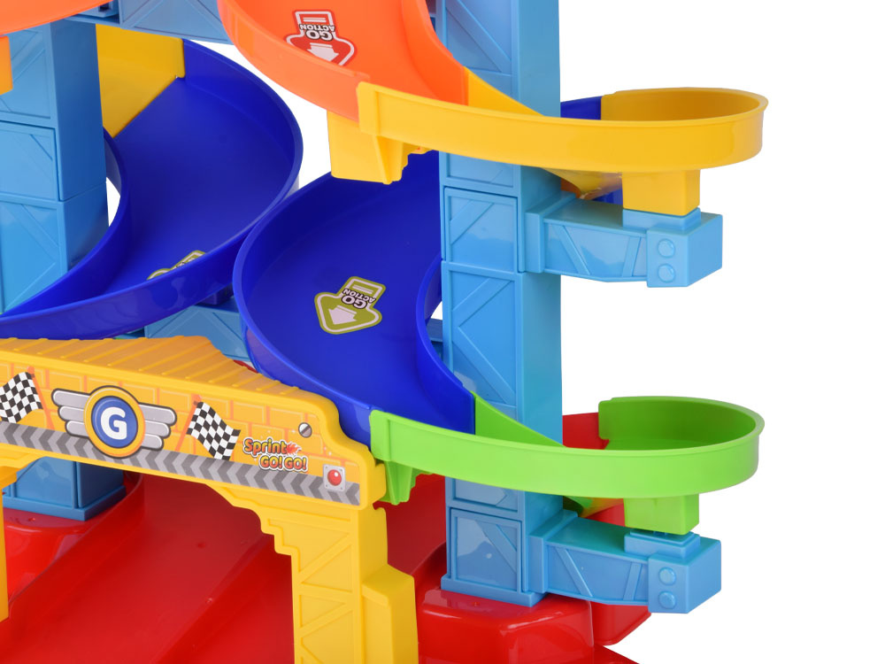 To zabawka, która dostarczy maluchom mnóstwo radości, a jednocześnie wspomoże ich rozwój. Dzięki kolorowym elementom i dynamicznej konstrukcji dzieci mogą obserwować, jak autka zjeżdżają po zakręconym torze, ścigając się w dół z dużą prędkością.