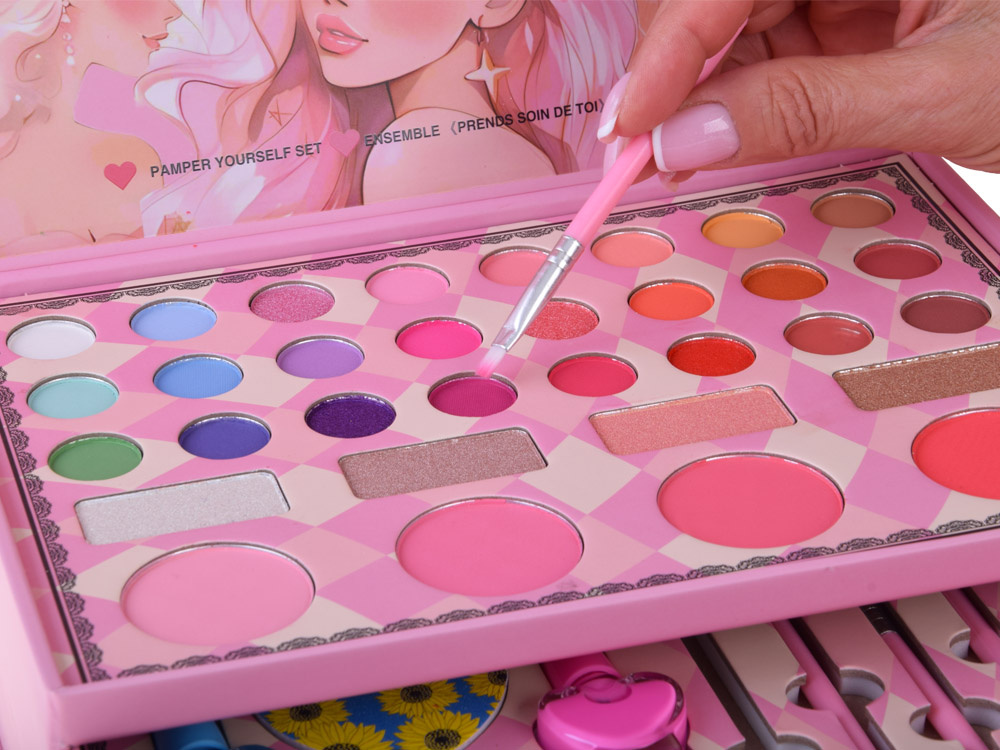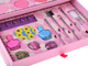 Ta szkatułka to prawdziwy skarb, w którym kryją się wszystkie najpiękniejsze akcesoria potrzebne do zabawy w makijaż, stylizację paznokci oraz tworzenie bajkowych fryzur. Jej pastelowa kolorystyka w odcieniach różu i delikatnych barw sprawia, że całość wygląda niezwykle dziewczęco, elegancko i słodko – idealnie dla małych księżniczek, które uwielbiają błysk i uroczą zabawę.