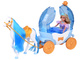 W zestawie znajduje się również bogato zdobiona karoca w kolorze błękitno-białym ze złotymi detalami, z otwieranym dachem, dzięki czemu łatwo można posadzić lalkę w środku i rozpocząć bajkową podróż. Karocę ciągnie biały rumak o niebieskiej grzywie, wyposażony w złote siodło, uzdę i uprząż, gotowy zawieźć księżniczkę na królewski bal!
