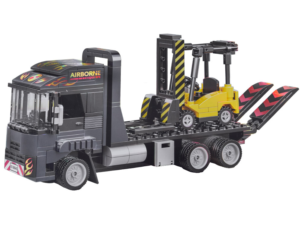 - Klocki do zbudowania tira z lawetą i wózka widłowego (404 elementy)