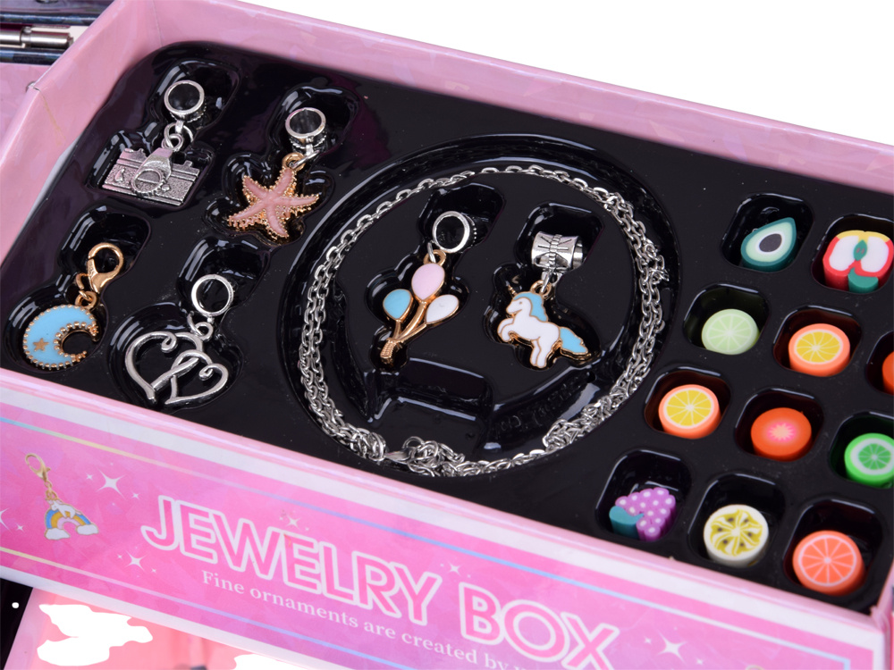 Rozkładana szkatułka na biżuterię z ogromną ilością koralików, zawieszek, charmsów i ozdób do włosów to spełnienie marzeń każdej małej dziewczynki! Dzięki niej mała dama może poczuć się jak dorosła kobieta. Dziewczynki uwielbiają obserwować swoje mamy, gdy te szykują się do wyjścia, nakładają makijaż, czeszą i układają włosy... a przede wszystkim je naśladować.