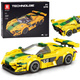 Zestaw klocków technicznych Żółte Supersportowe Auto z Zielonym Pasem to propozycja dla fanów nowoczesnych supersamochodów i ekstremalnych konstrukcji. Model odzwierciedla charakterystyczną sylwetkę współczesnych wyścigowych aut: nisko osadzoną karoserię, szerokie nadkola i aerodynamiczne kształty, które podkreślają jego dynamiczny i agresywny wygląd.