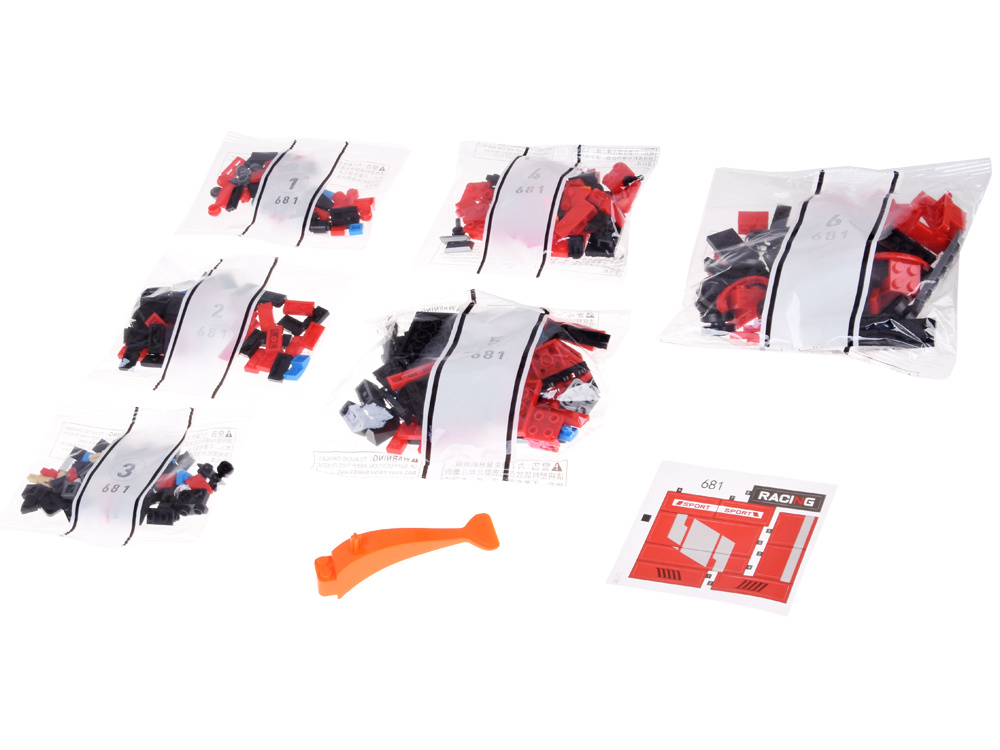 • klocki plastikowe, techniczne, samochód sportowy, pojazd, auto wyścigowe, sportowe auto, naklejki do dekoracji pojazdu w zestawie, technologie