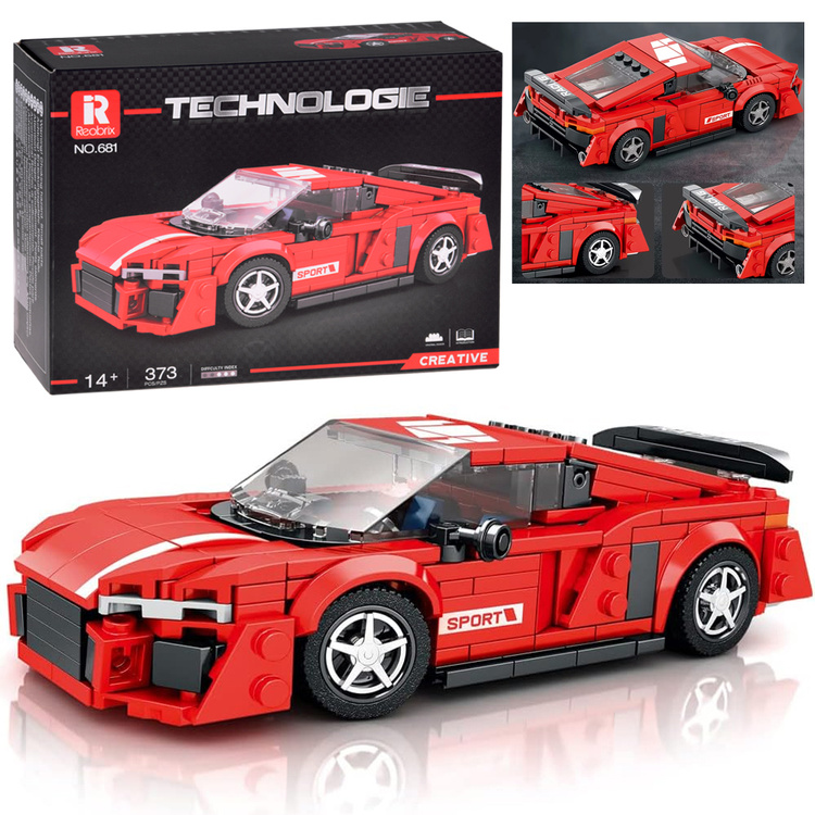 Auto utrzymane jest w intensywnie czerwonym kolorze, z niską, aerodynamiczną sylwetką oraz dynamicznymi liniami nadwozia, które podkreślają jego sportowy charakter. Zestaw składa się z 373 elementów, dzięki czemu budowa jest satysfakcjonująca, a sam model zachowuje dużą szczegółowość i stabilność.