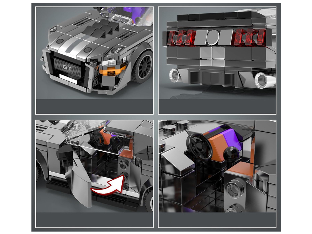Zestaw klocków technicznych Szare auto GT z podwójnymi paskami to idealna propozycja dla fanów klasycznej amerykańskiej motoryzacji i wyścigowego charakteru. Model inspirowany legendarnym samochodem z lat 60. wyróżnia się masywną sylwetką, muskularnymi liniami i unikalnym stylem, który do dziś budzi zachwyt wśród pasjonatów szybkich maszyn.