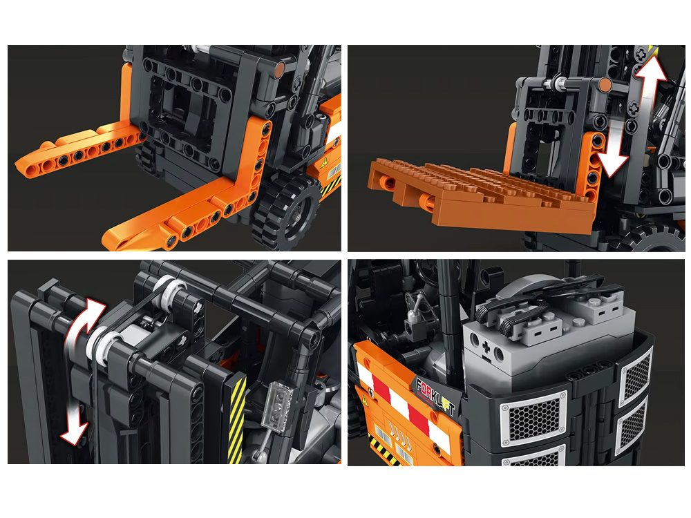 Składa się z aż 722 elementów, które po złożeniu tworzą w pełni funkcjonalny model z ruchomym podnośnikiem, systemem przechylania wideł oraz realistycznym układem kierowniczym.