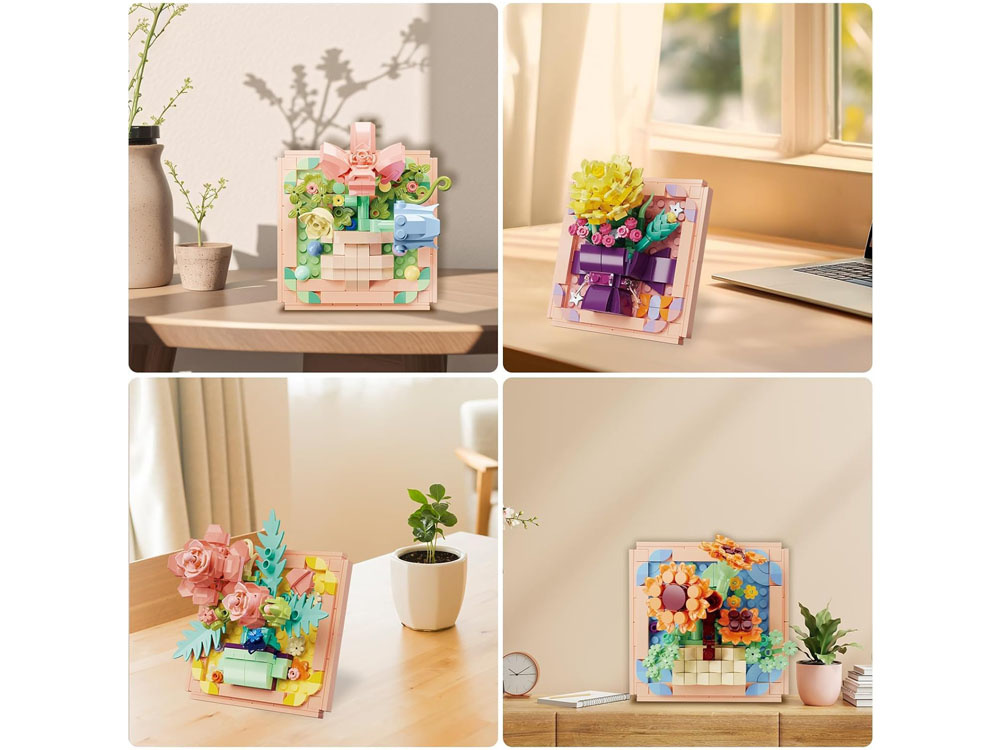 Zestawy klocków z serii „Oddech wiosny” to niezwykła propozycja zarówno dla dzieci, jak i dorosłych, którzy lubią kreatywną zabawę oraz piękne dekoracje. Dzięki nim można samodzielnie stworzyć wyjątkowe kompozycje kwiatowe, które staną się trwałą ozdobą pokoju. To połączenie pasji do budowania z estetyką i delikatnością natury.Każdy zestaw składa się z ponad 200 elementów, z których można zbudować efektowne bukiety 3D umieszczone w ramce. Konstrukcje są stabilne, kolorowe i pełne detali, dzięki czemu gotowe modele wyglądają niezwykle realistycznie i elegancko.