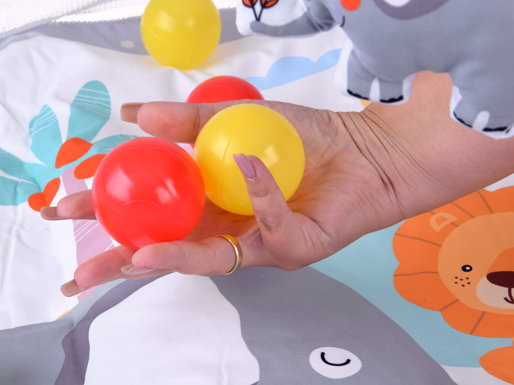 Dodatkowym atutem maty są siateczkowe ścianki, które zapobiegają wypadaniu piłeczek i zabawek poza obszar zabawy.
