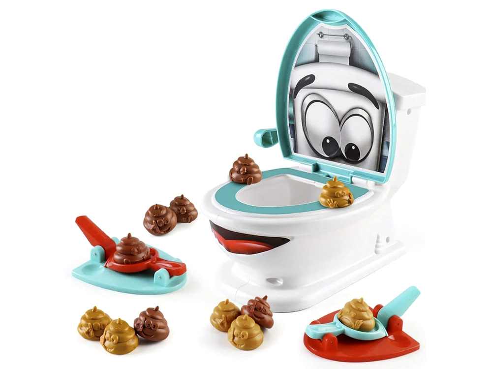 Zadanie jest proste – ale wykonanie może doprowadzić do wybuchu śmiechu. Każdy gracz dostaje wyrzutnię i zestaw sześciu „kupek” w swoim kolorze. Waszym celem jest wystrzelić wszystkie swoje odchody w stronę muszli klozetowej i sprawić, by deska się zamknęła. Brzmi banalnie?