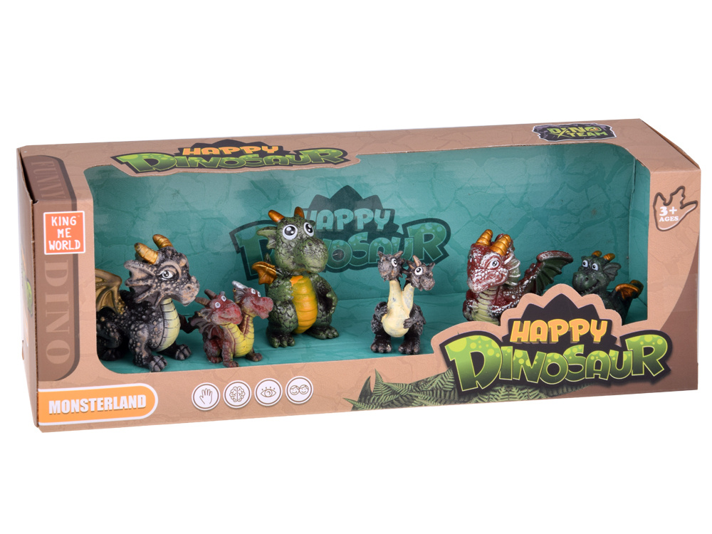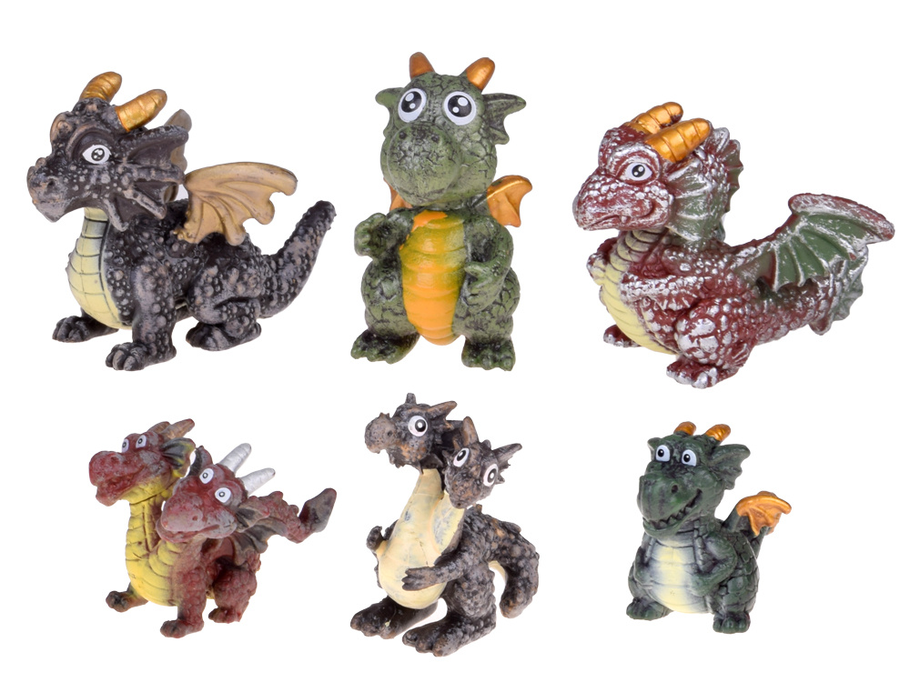 - 6 różnorodnych figurek smoków w bajkowym, wesołym stylu,