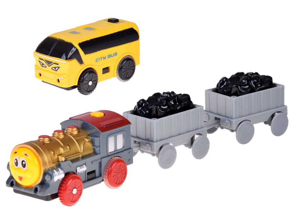 - Niezależny ruch pojazdów – lokomotywa i autobus mogą jeździć po torze jednocześnie, ale niezależnie od siebie, co pozwala tworzyć rozbudowane scenariusze zabawy.