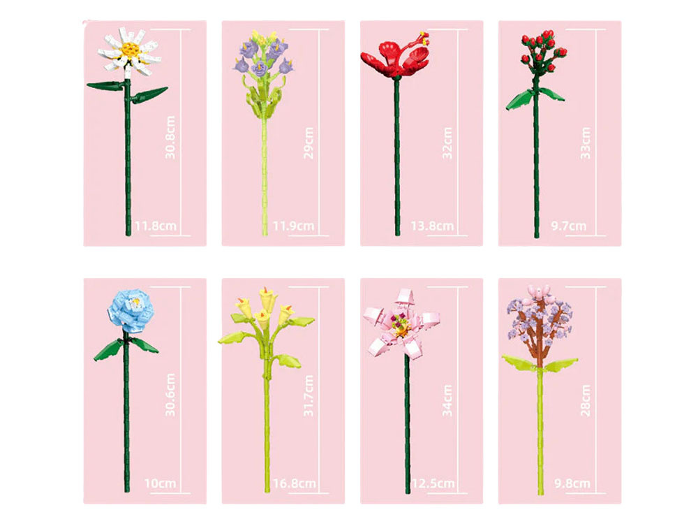• zestaw klocków, klocki konstrukcyjne, seria kwiaty w wazonie, flakon, wazon w zestawie, bukiet na prezent