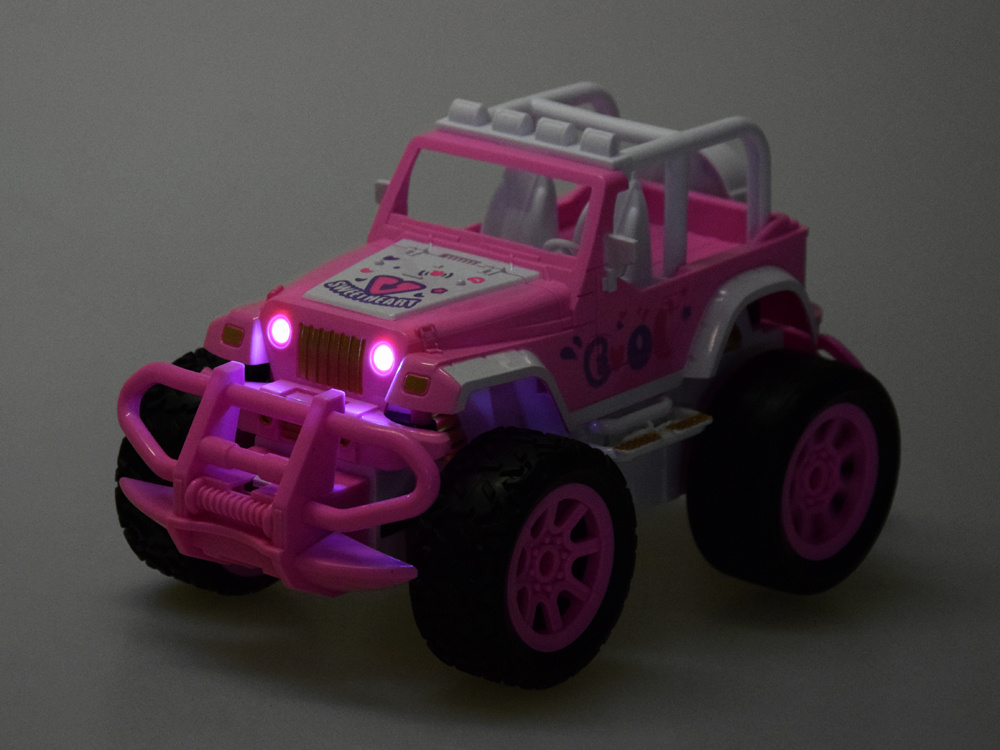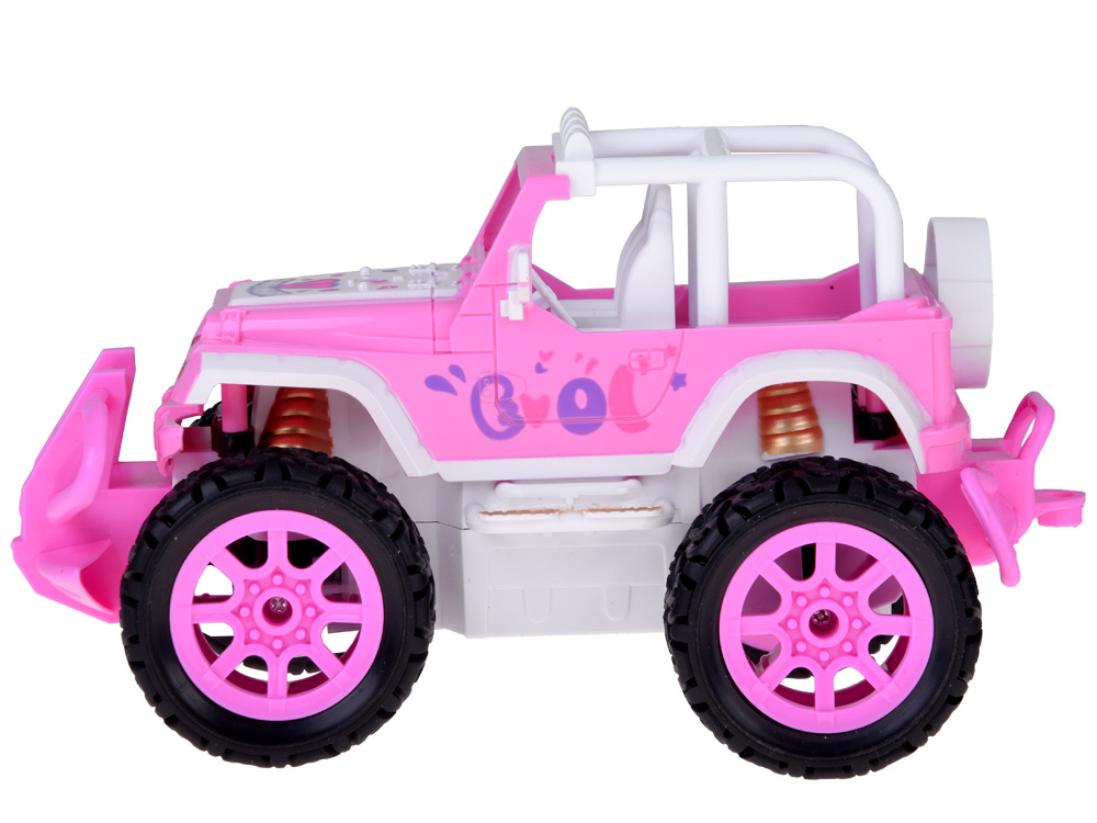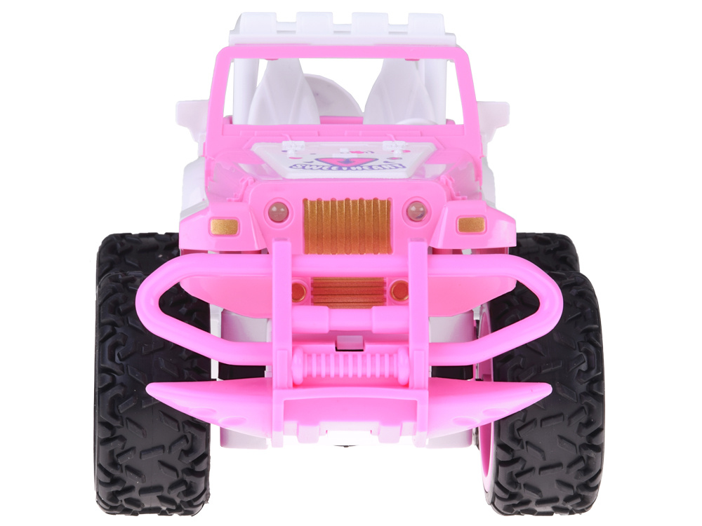 Śliczny różowy terenowy Jeep zapewni mnóstwo radości i stanie się niezastąpionym środkiem transportu dla małych zabawek Twojej pociechy. Idealny pomysł na prezent!