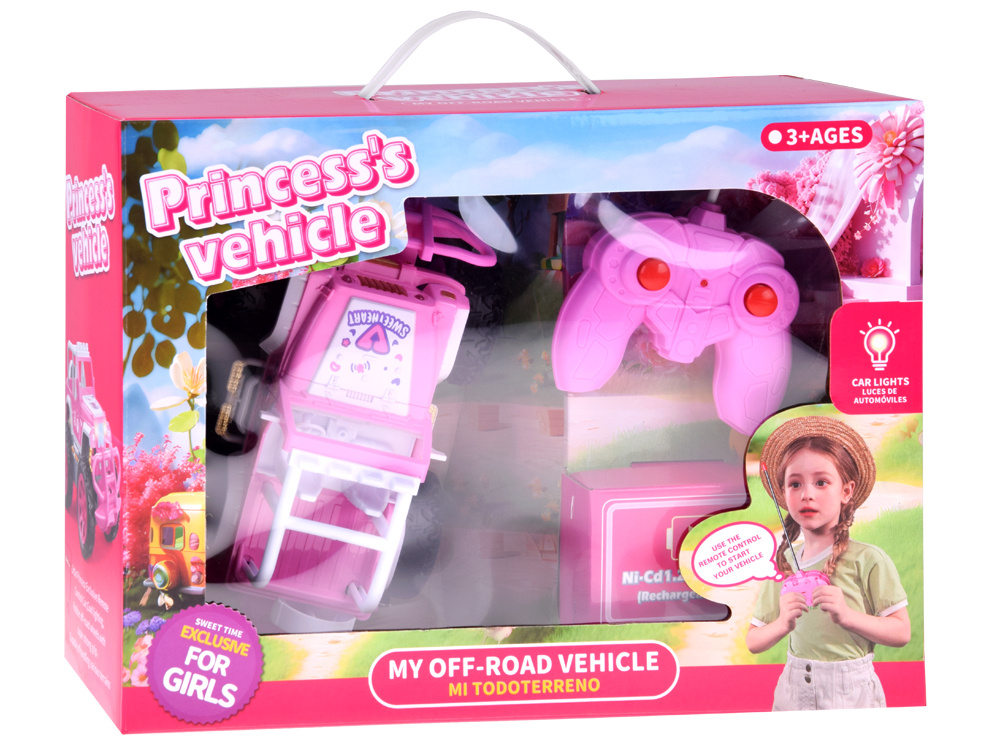 Zdalnie sterowany samochód terenowy w różowym wydaniu to spełnienie marzeń każdej małej księżniczki! Princess’s Vehicle to wyjątkowa zabawka, która łączy w sobie atrakcyjny design z dynamiczną zabawą. Dzięki pilotowi w kształcie pada dziecko może łatwo sterować pojazdem, rozwijając przy tym koordynację i refleks.
