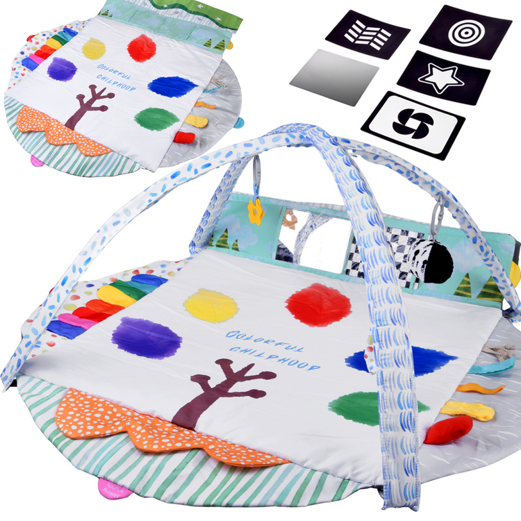 - Samodzielna mata do zabawy: po zdjęciu pałąków staje się wygodnym miejscem do leżenia na brzuszku i swobodnej zabawy.