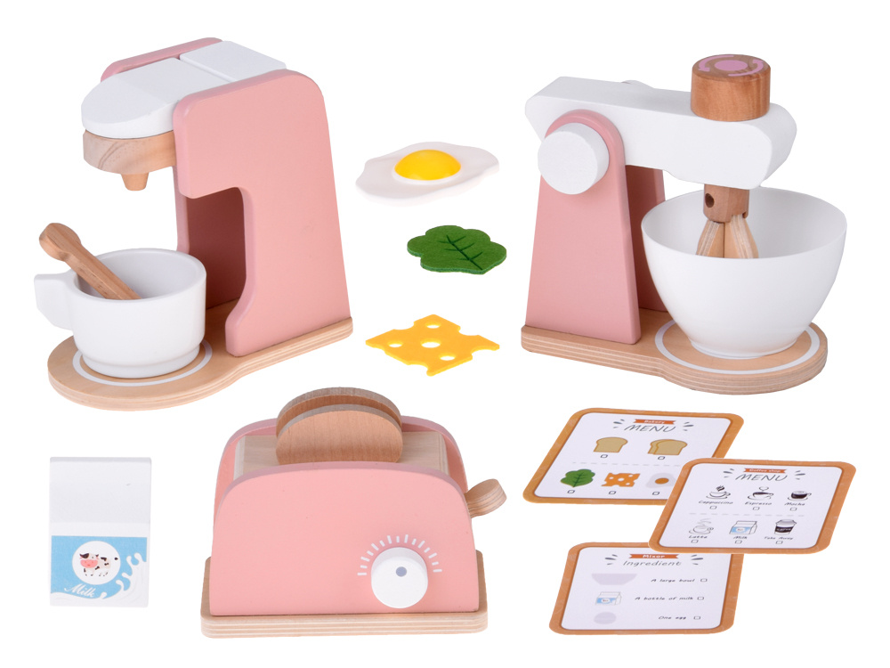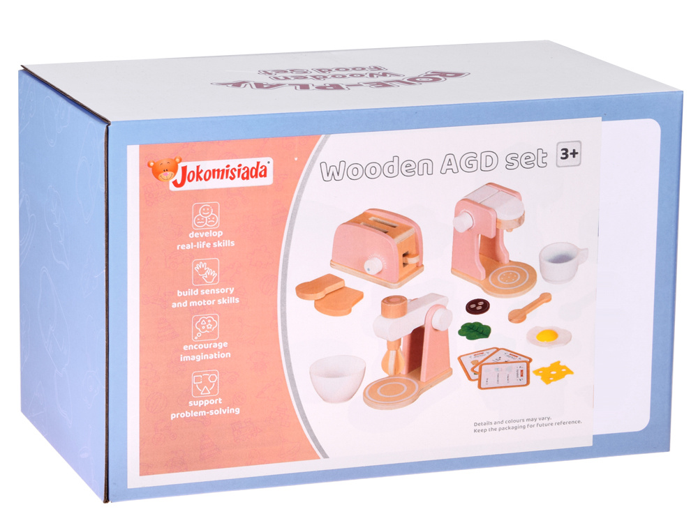 Zestaw drewniany AGD – smak zabawy jak w prawdziwej kuchni - zestaw AGD – toster, ekspres i mikser!