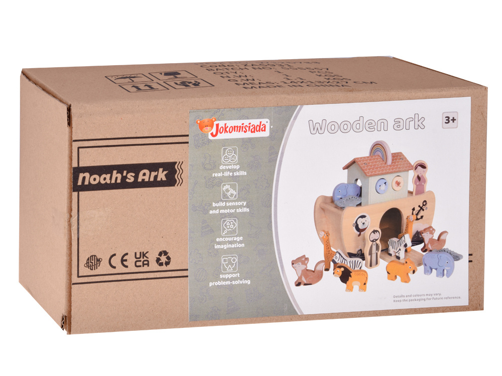 Piękna, kolorowa drewniana Arka Noego to klasyczna zabawka edukacyjna, która zachwyci każde dziecko i zachęci do edukacyjnej zabawy.