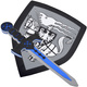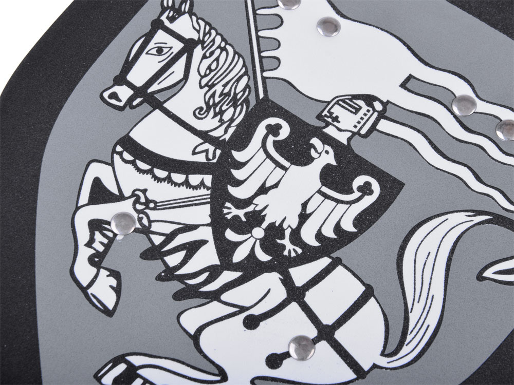 - 1 x piankową tarczę (30 x 25 cm) z motywem rycerza na koniu