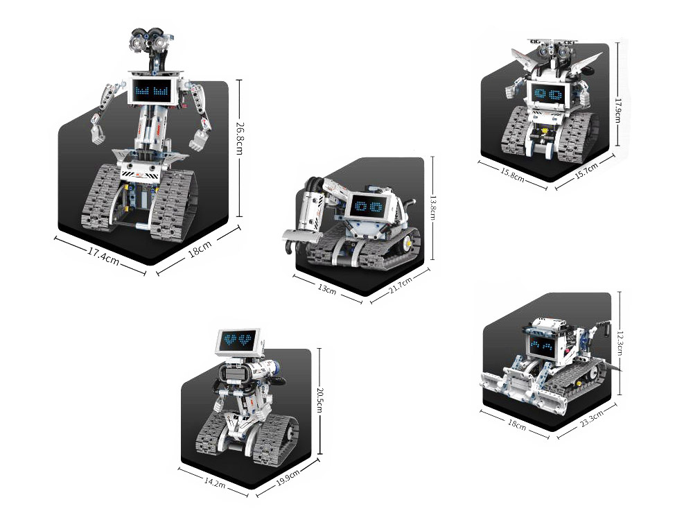 - możliwość zbudowania 5 różnych modeli robotów