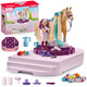 Obrotowa stacja do pielęgnacji koni z serii Horse Club Sofia's Beauties to wspaniały pomysł na prezent dla każdej fanki tych niesamowitych stworzeń. Wiele dziewczynek marzy o posiadaniu własnego konia, z piękną, długą grzywą ale takie marzenie jest bardzo ciężko spełnić. Dzięki temu zestawowi i odrobinie wyobraźni, dziecko może poczuć się jak właściciel i opiekun konika i zadbać o swojego podopiecznego.