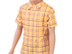 Strój: koszula w kratkę w tonacji ciemnożółtej, ciemne jeansy, białe buty