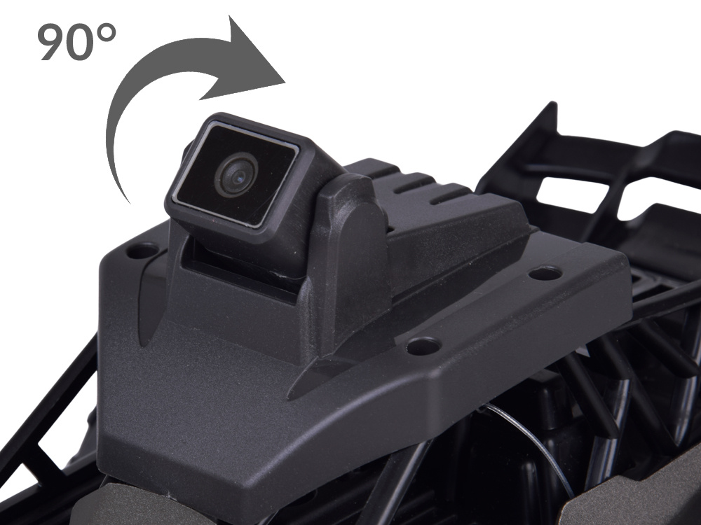 • Regulacja kąta kamery – sterowanie ustawieniem obiektywu z poziomu pilota