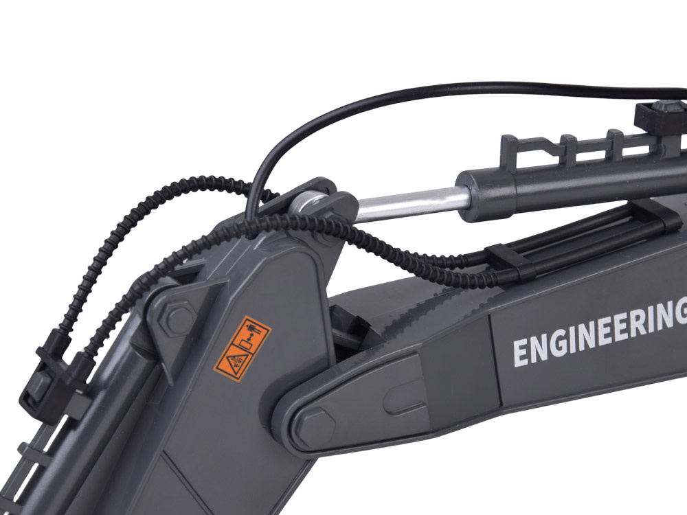 Ta realistyczna koparka zdalnie sterowana to doskonały wybór dla małych fanów maszyn budowlanych. Wykonana z ogromną dbałością o detale, wygląda jak prawdziwy sprzęt z placu budowy – z kabiną operatora, ruchomym ramieniem, oświetleniem LED, wymiennymi końcówkami (chwytak, młot pneumatyczny, łyżka) .