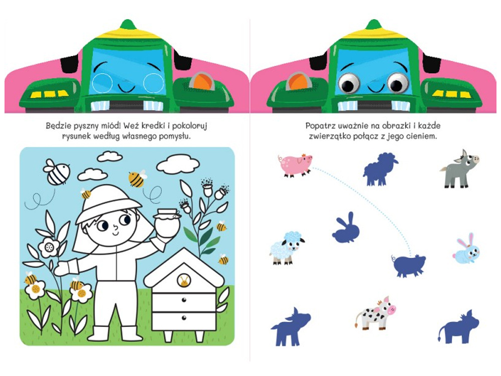Wesoły Traktorek zaprasza do wspólnej nauki przez zabawę – ruchome oczka dodają uroku i angażują najmłodszych czytelników!