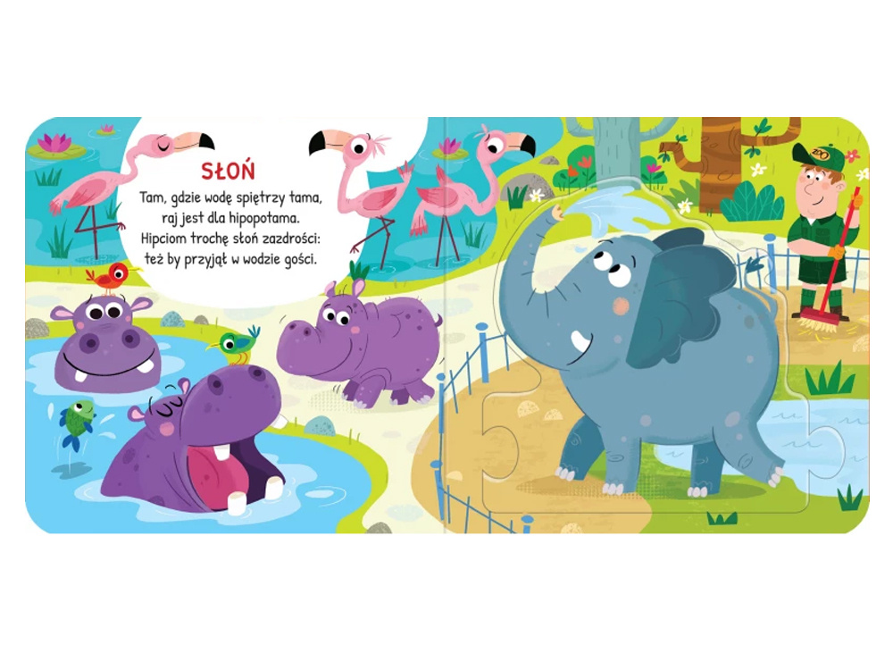 Jednym z największych atutów serii jest połączenie książki z elementami układanki. Duże, solidne puzzle są dopasowane do małych rączek i pomagają rozwijać małą motorykę, koordynację wzrokowo-ruchową oraz cierpliwość. Co więcej, puzzlami można bawić się także poza książką – można je dowolnie układać, łączyć i zestawiać z elementami z pozostałych tytułów z serii.