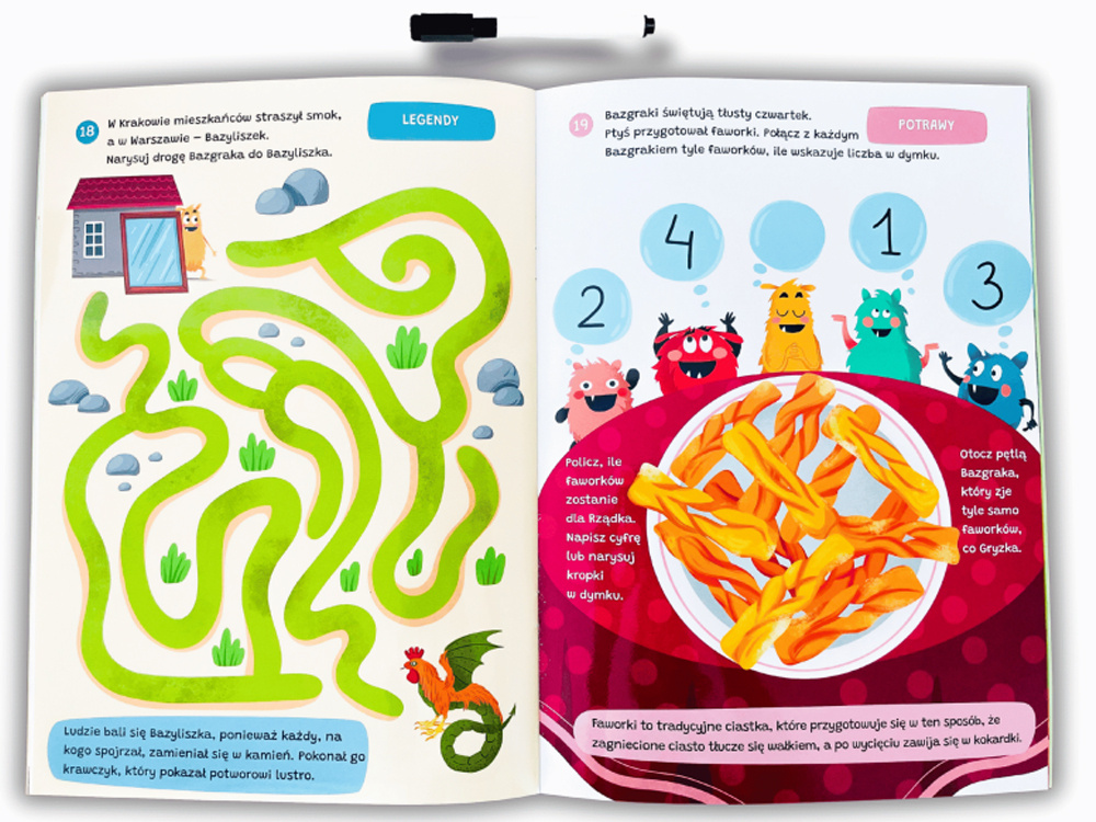 To niezwykła książeczka edukacyjna, która zaprasza dzieci do odkrywania piękna i różnorodności naszego kraju. W towarzystwie sympatycznych bohaterów – Bazgraków – najmłodsi poznają polskie regiony, ich tradycje, obyczaje i kulinarne specjały. To doskonała propozycja dla przedszkolaków i dzieci w wieku wczesnoszkolnym, które lubią aktywną zabawę połączoną z nauką.