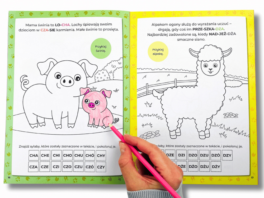 Poznaj wesoły świat wsi i naucz się czytać przez zabawę! „Kolorowanka sylabowa. Na wsi” to wyjątkowa książeczka edukacyjna, która wspiera naukę czytania metodą sylabową. Dzięki niej dzieci w naturalny sposób utrwalają poznane sylaby, ćwiczą koncentrację i rozwijają umiejętność logicznego myślenia.